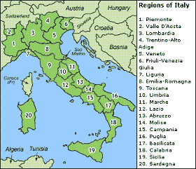 - ABRUZZI (阿布魯左) - 不太出名的產區,位於意大利的中東部,但區內的 Montepulciano d Abruzzo 也名列意大利主要的紅紅酒,是意大利最流行和最容易接受的紅紅酒之一