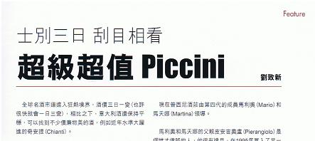 酒經月刊 總編輯 劉致新先生 對PICCINI的評論:超級超值...